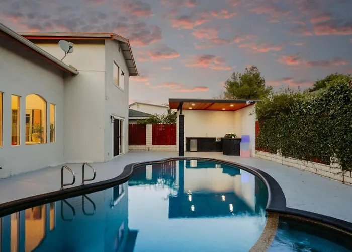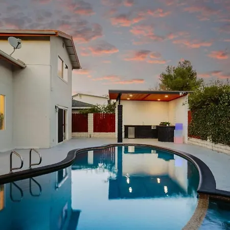 Designer Dream- Pool And Spa- Game Room- Sleeps 10 villa has a fully furnished kitchen plus a microwave, coffee and tea making equipment, and a refrigerator in it. Guests can dine at N'Ice Cream, which is 8 minutes' walk away. The nearest airport is Los Angeles International, located 10 km away.